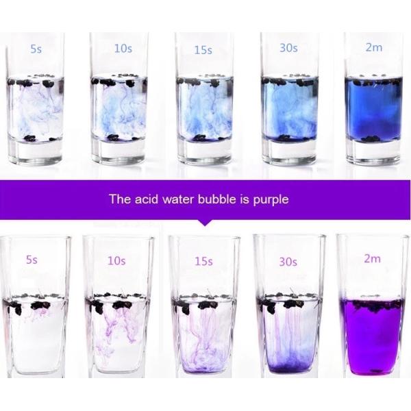 Alkaline water bubbles are blue